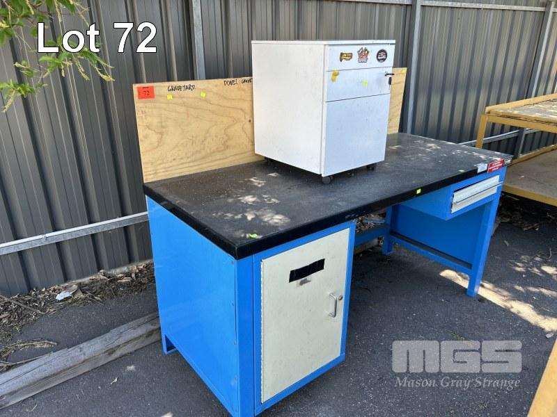 STEEL WORK BENCH, 1800 x 800 x 900mm, WITH BACKBOARD, POWER POINTS & 3 DRAWER FILING CABINET