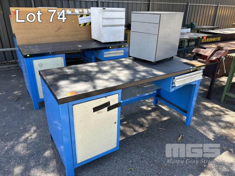 STEEL WORK BENCH, 1800 x 800 x 900mm, DAMAGED DRAWER, UNDERBENCH CUPBOARD, DAWN 100mm VICE & 3 DRAWER FILING CABINET