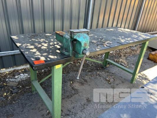 STEEL WORK BENCH, 2200 x 800 x 900mm, WITH DAWN SG VICE, 150mm