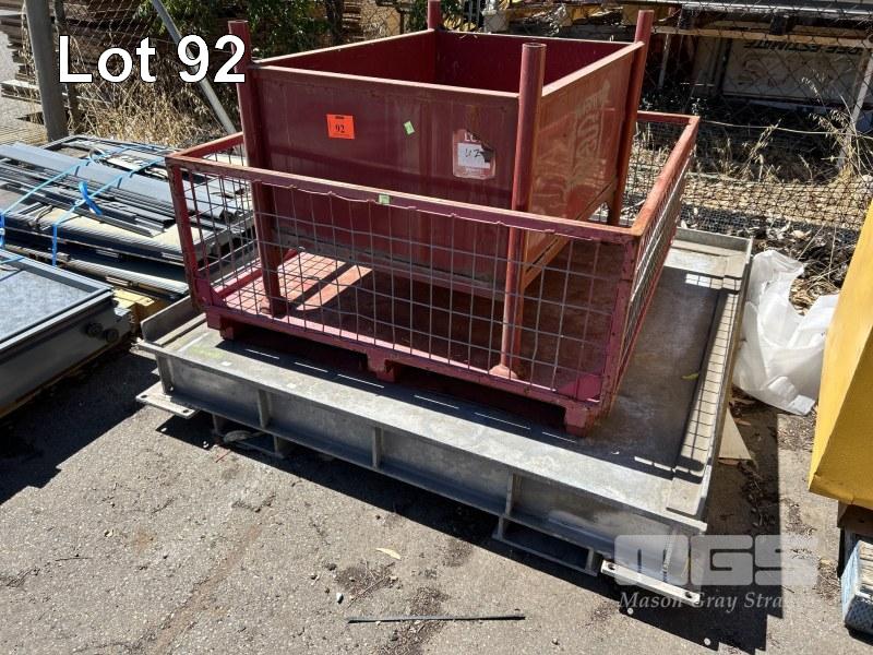 2 x STEEL STILLAGES & STEEL PLATFORM, 1500 x 1500mm (W)