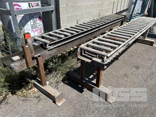 2 x ROLLER CONVEYOR SECTIONS ON STANDS 2900mm (L), 380mm (W) x 750mm (H)