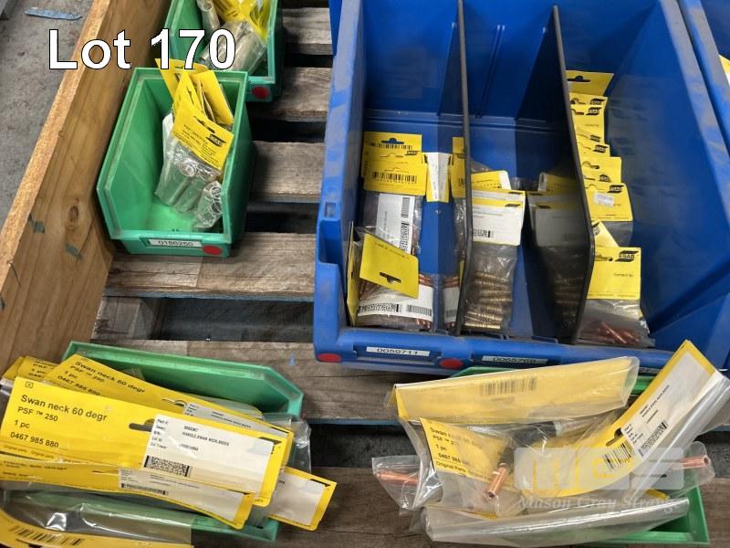 MIG WELDER COMPONENTS, ESAB INCLUDING TIPS, SWAN NECKS, FITTINGS, SHROUDS, ETC IN PARTS DRAWERS 1 x PALLET