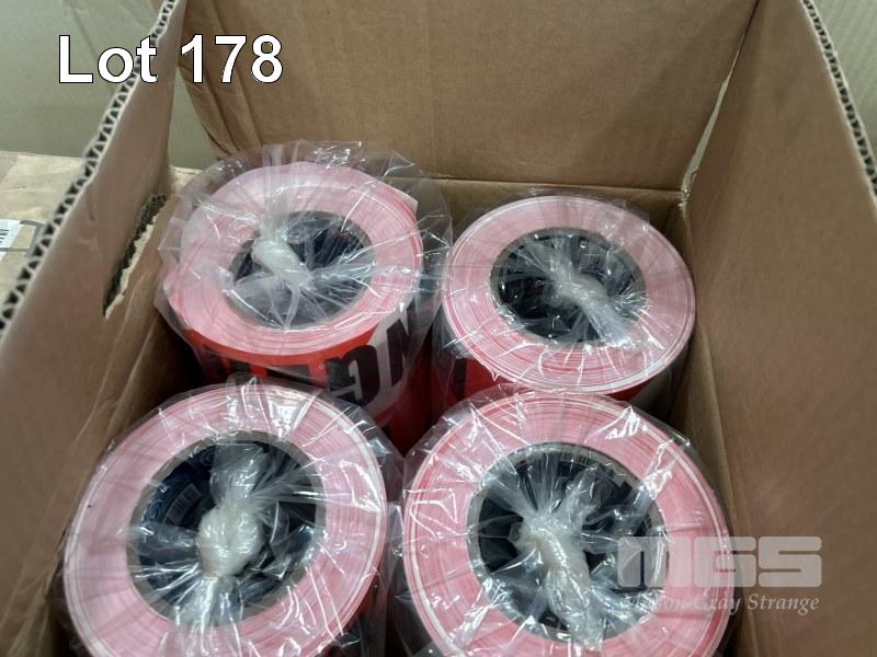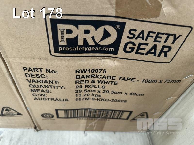 DANGER/WARNING TAPE, RED & WHITE STRIPED, 75mm x 100m, 9 x BOXES, (20 ROLLS/BOX)
