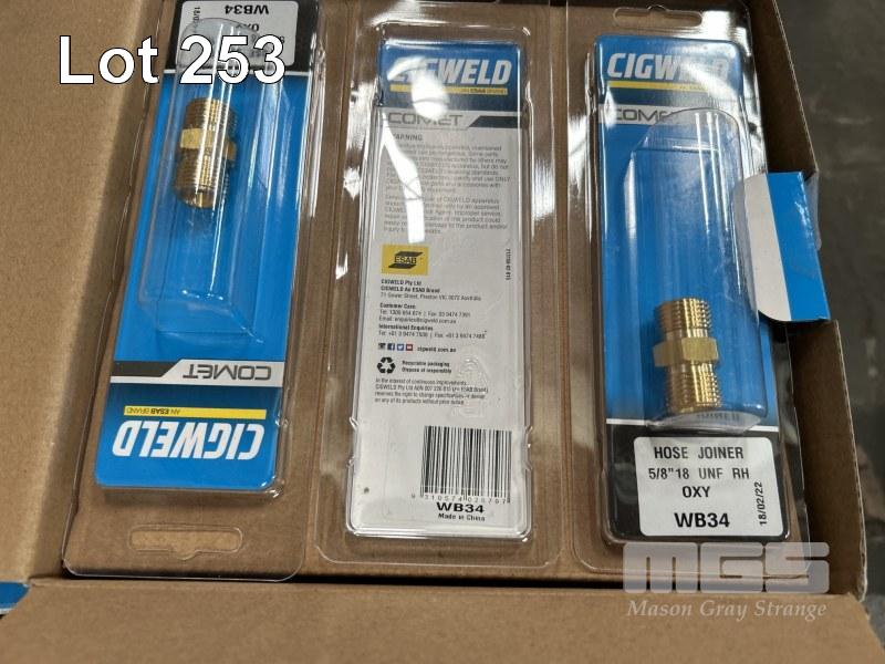 HOSE JOINERS, CIGWELD COMET INCLUDING 5/5" 18 UNF RH OXY, WB34 LH HOSE END KITS, 5mm, CUTTING NOZZLES, ETC 35 x BOXES APPROX