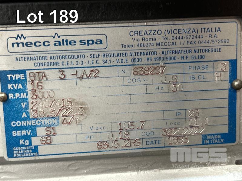 GENERATOR, ADVANCED POWER 16KVA WORKMATE, MECC ALITE SPA TYPE: BTA-3-LA/2 240/415V POWERED BY KOHLER COMMAND 18 PETROL ENGINE KEY START, MOBILE