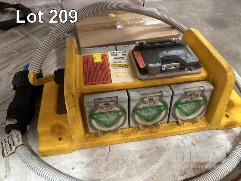 POWER RCD BOARD, LIFEGUARD LG6.6PSOA 6 x OUTLET, 240V, 15A, 10 x PAIRS LEATHER WORK GLOVES, S, 20 x PAIRS HI VIS ANTI CUT GLOVES, S & 1 x BOX GLOVE CLIPS