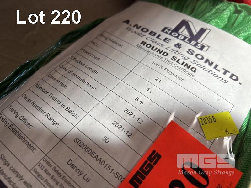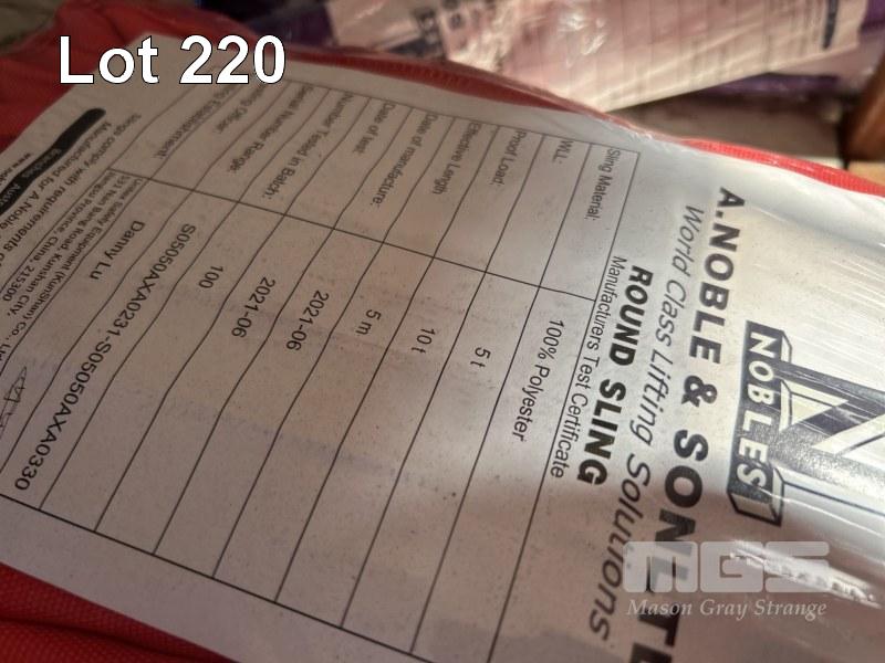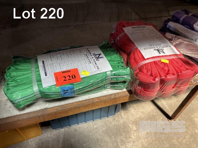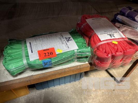 LIFTING SLINGS, NOBLE & SONS, RED & GREEN, 2 x 2 TONNE @ 5m, 1 x 5 TONNE @ 5m AS NEW