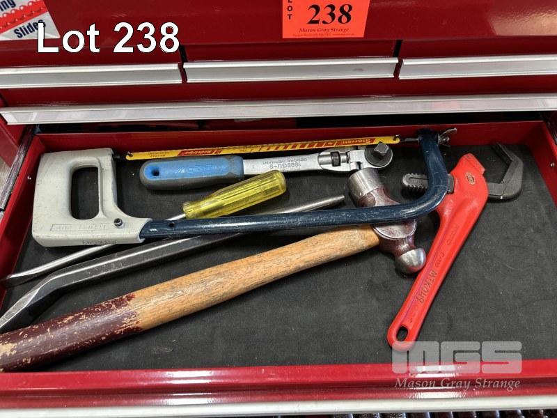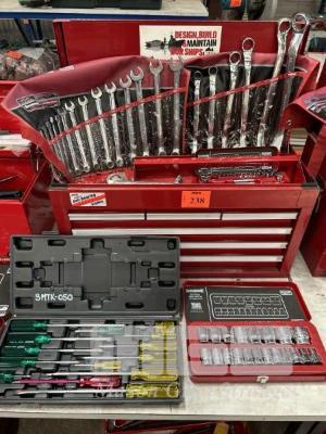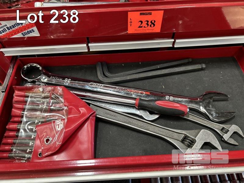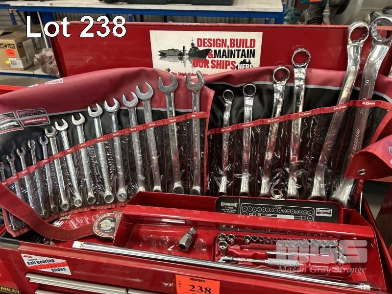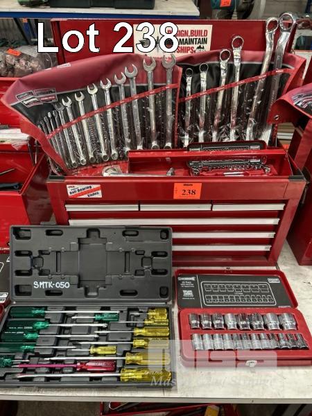 TOOL CHEST, JBS 6 x DRAWER WITH ASSORTED HAND TOOLS INCLUDING SIDCHROME 20 PIECE SOCKET SET, 2 x COMBINATION SPANNER SETS, ETC