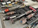 PNEUMATIC POWER TOOLS INCLUDING DIE GRINDERS, ANGLE GRINDER, ATLAS COPCO IMPACT DRIVER & IMPACT SOCKET SET, 3 x NEEDLE DESCALERS, ETC 1 x SHELF