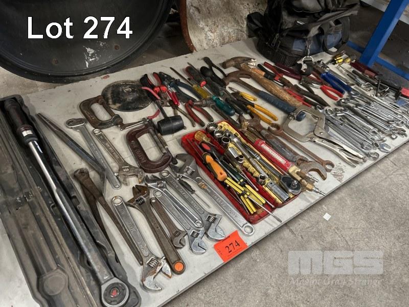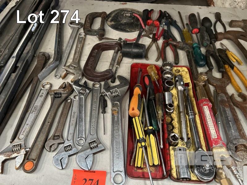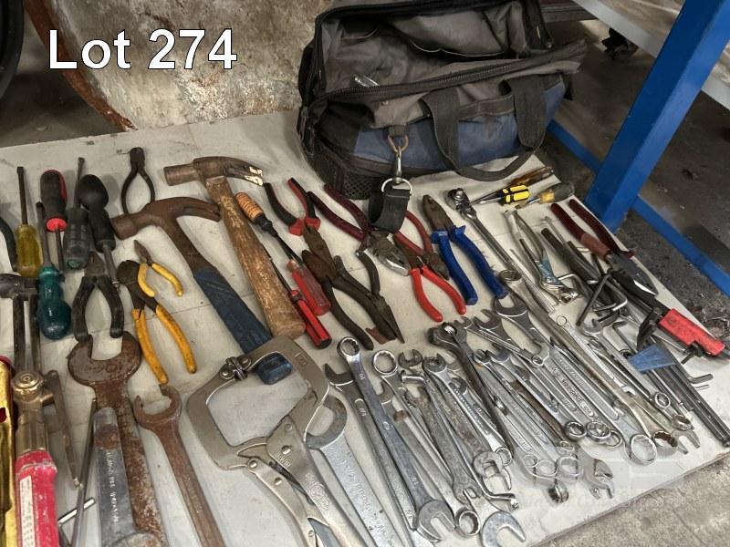 QUANTITY ASSORTED HAND TOOLS, INCLUDING NORBAR TORQUE WRENCH 340, SHIFTERS, VICE GRIPS, HAMMERS, SPANNERS, PLIERS, CUTTERS, ETC WITH SOCKET SET & TOOL BAG