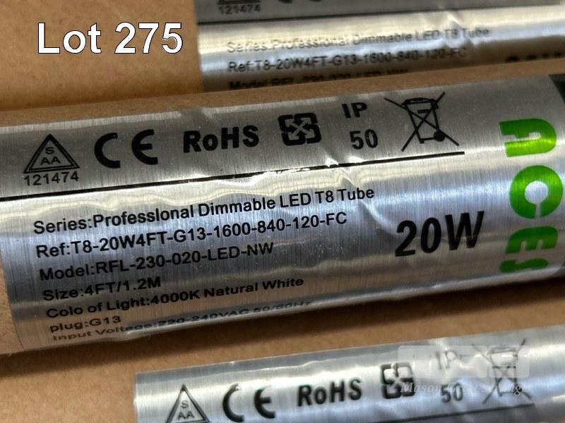 20 x LED FLURO TUBES, ACES MOD: RFC-23000200LED-NW DIMMABLE, 20w SIZE: 4'/1.2m, NATURAL WHITE (AS NEW)