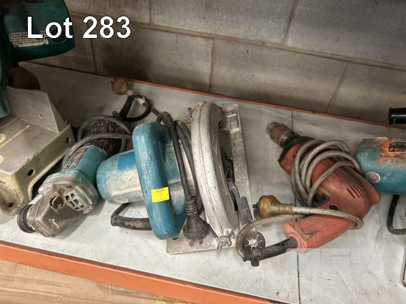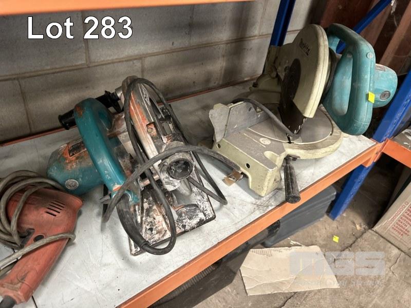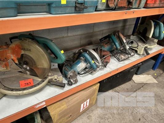 MAKITA POWER TOOLS INCLUDING, 2 x MITRE SAWS, 2 x CIRCULAR SAWS & ANGLE GRINDERS, 240V