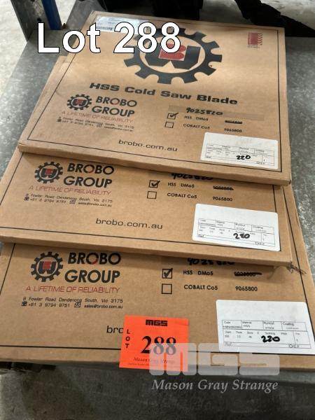 3 x COLD SAW BLADES, BROBO, HSS, DMOS 350mm, 220 TOOTH & 3 x STARK HSS, 350mm DIAMETER 220 TOOTH, AS NEW