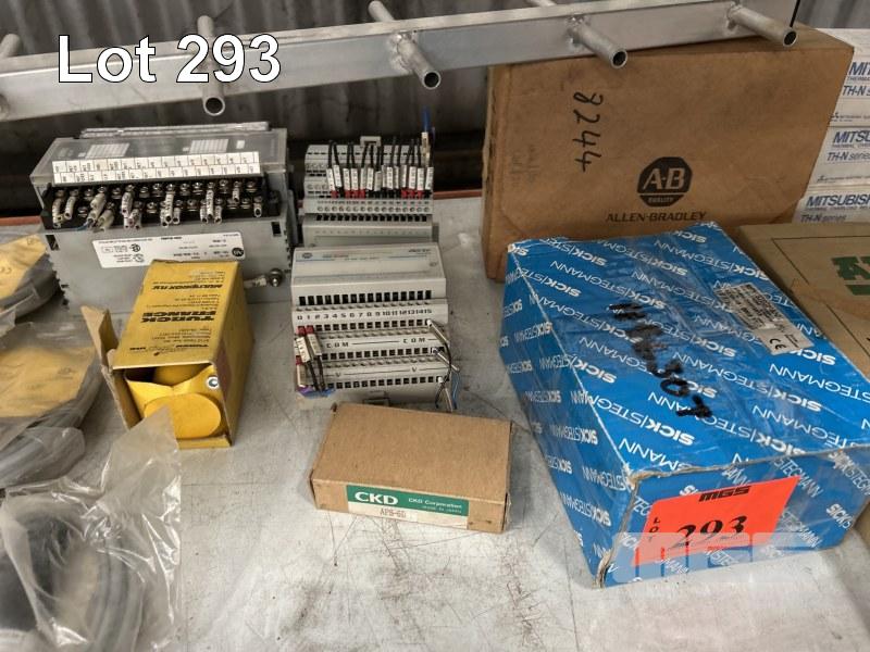 ELECTRONIC COMPONENTS INCLUDING ALLEN BRADLEY PLC, SICK ENCODER, ARBURG PCB'S, PROXIMITY SENSORS, MILWAUKEE CHARGERS & 2 WAY AERIAL