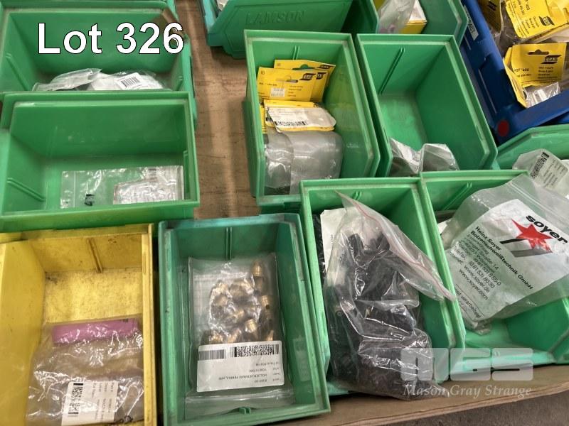 MIG & TIG WELDING ACCESSORIES, ESAB INCLUDING TIPS, SHROUDS, NOZZLES, ROLLER FEEDS, CONNECTORS, ETC IN 23 x PARTS DRAWERS 1 x PALLET