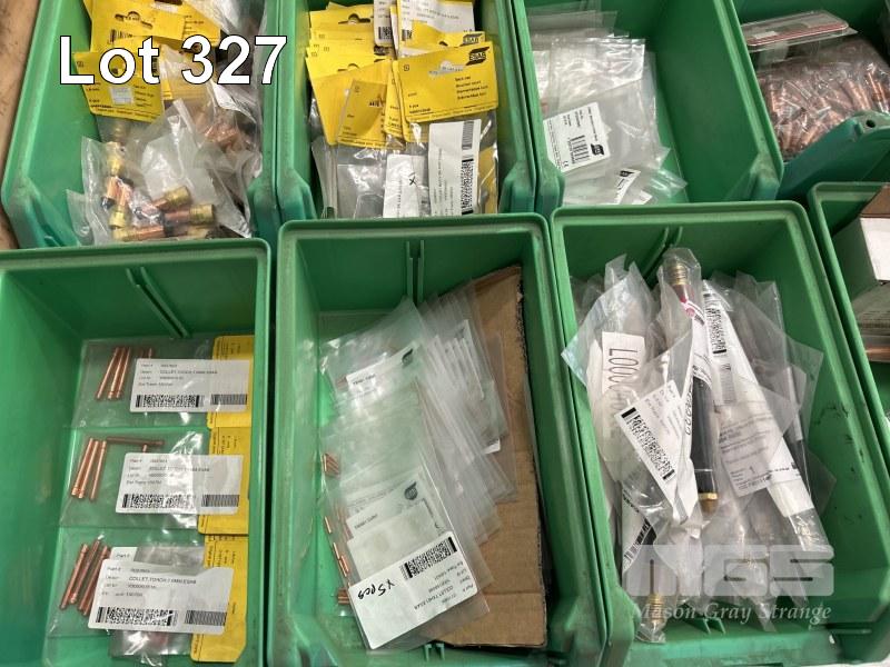 MIG & TIG WELDING ACCESSORIES, ESAB & WESS INCLUDING GAS LENSES, TIPS, CAPS, ROLLER FEEDS, SWAN NECKS, ETC IN 14 x PARTS DRAWERS 1 x PALLET