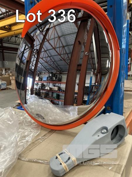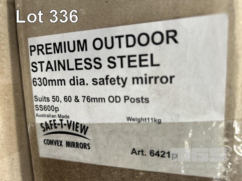 2 x DOME SAFETY MIRRORS, SAFE T VIEW, PREMIUM OUTDOOR STAINLESS STEEL, 630mm DIAMETER WITH MOUNTING BRACKET, NEW IN BOX