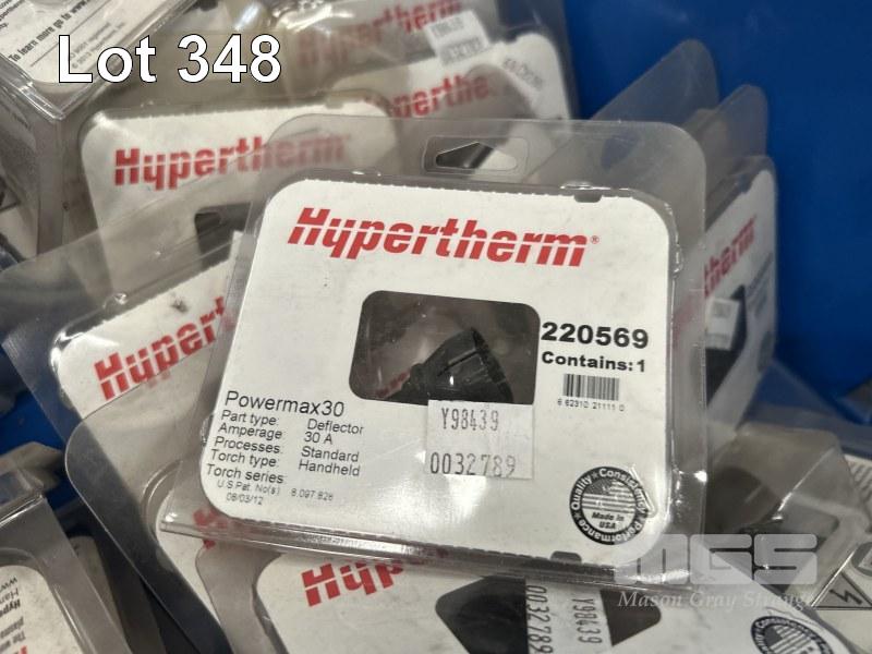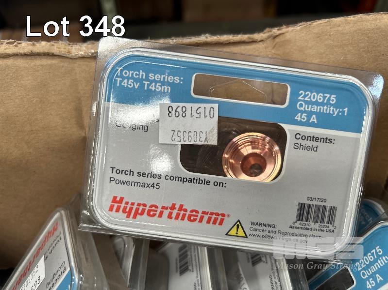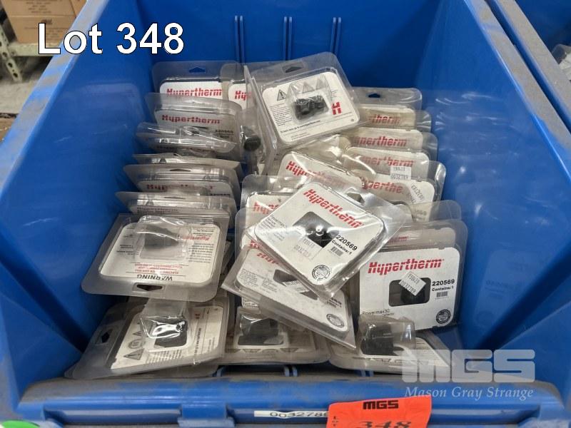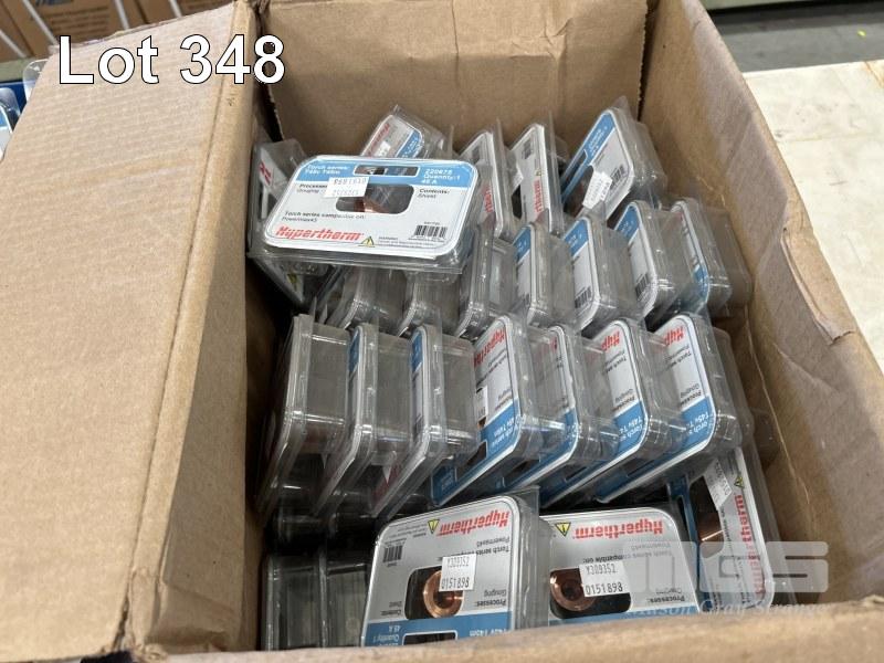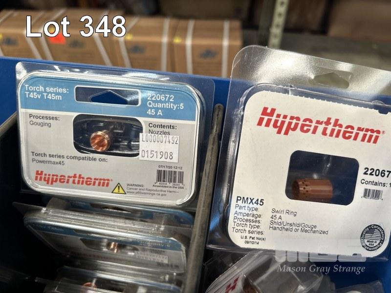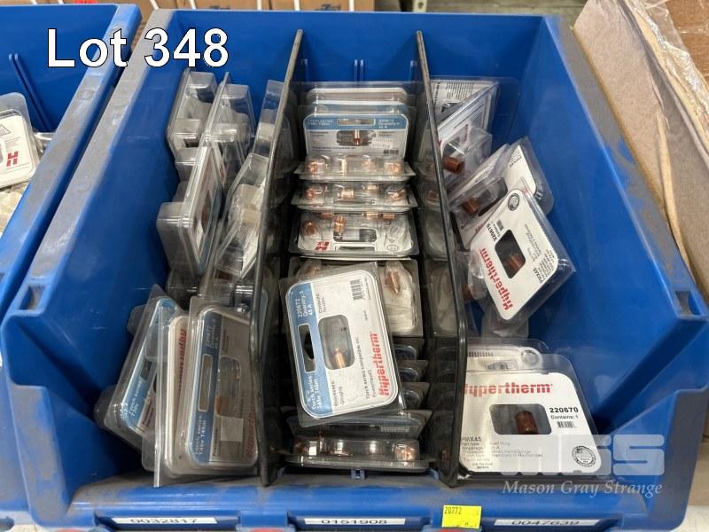 HYPERTHERM PLASMA CUTTING PARTS INCLUDING POWERMAX 30 DEFLECTORS T45 V T45M NOZZLES & SHIELDS PMX45 SWIRL RINGS IN 2 x PARTS DRAWERS & 1 x BOX