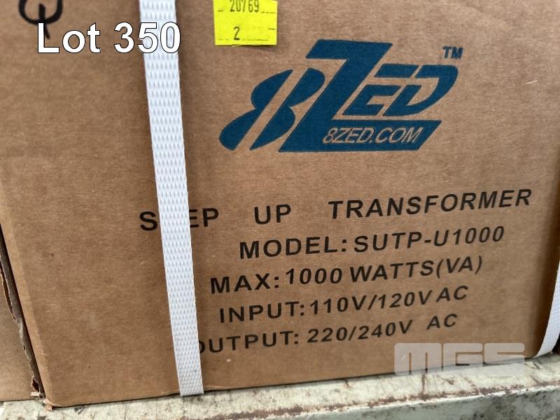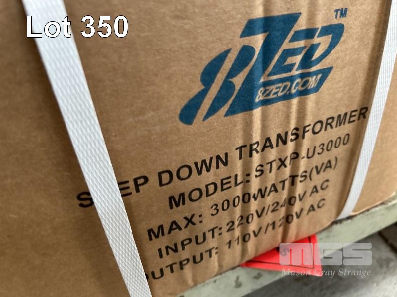 STEP UP & STEP DOWN TRANSFORMERS & VOLTAGE CONVERTERS, 8ZED INC 1 @ 4000w, 100V AC TO 240V AC, 1 @ 3000w, 240V TO 120V, 1 @ 1000w, 240V TO 120V, 1 @ 1000w, 120V AC TO 240V AC & 2 @ 100w, 240V AC TO 120V AC AS NEW IN BOX 1 x SHELF