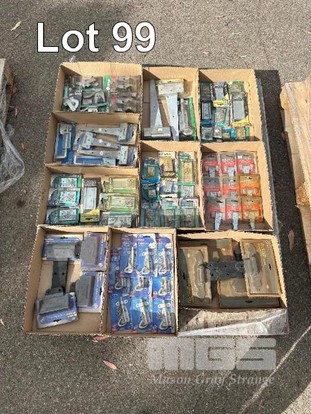ASSORTED HARDWARE, SLIDE BOLTS, SCREWS, HINGES ETC.