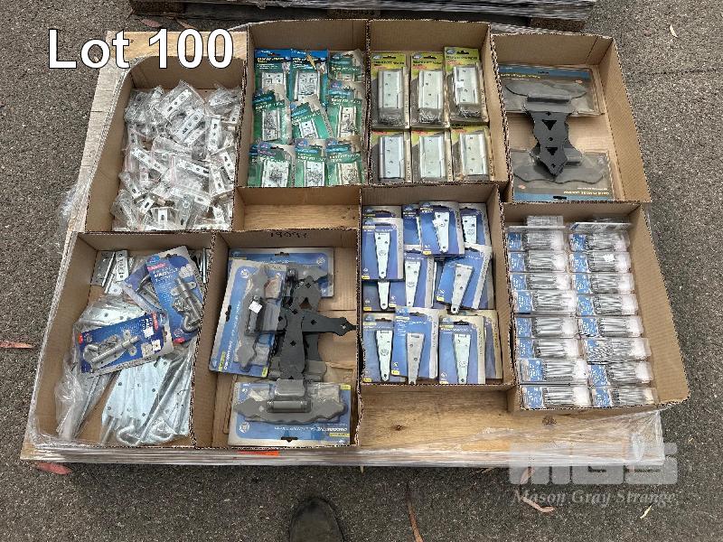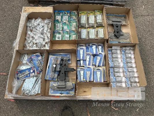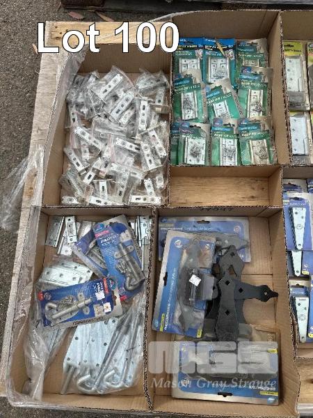 ASSORTED HARDWARE, SLIDE BOLTS, SCREWS, HINGES ETC.