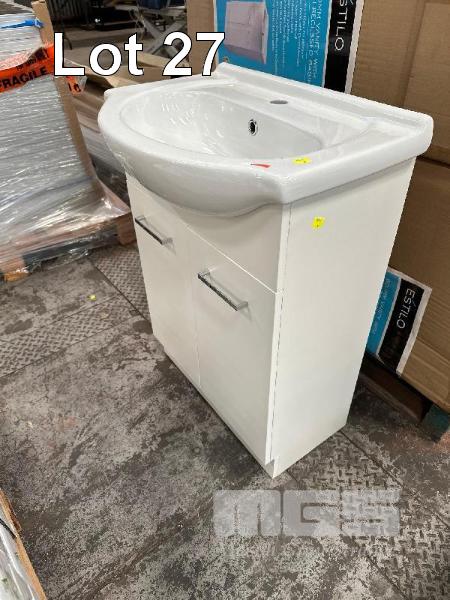 SEMI RECESSED BASIN, ESTILO 610 (W) x 430 (D) x 850mm (H) WHITE MELAMINE FINISH SINGLE TAP HOLE
