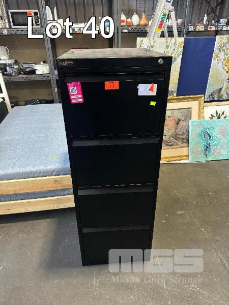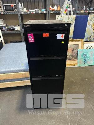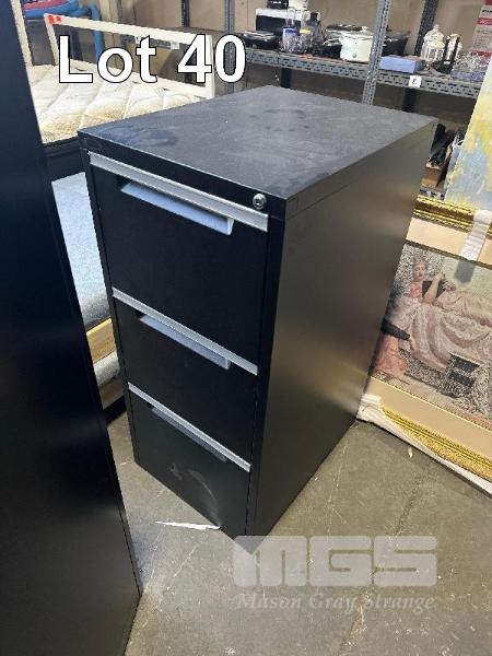 4-DRAWER FILING CABINET AND 3-DRAWER FILING CABINET. BOTH IN BLACK.