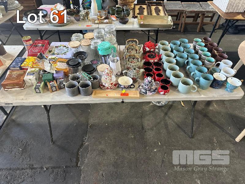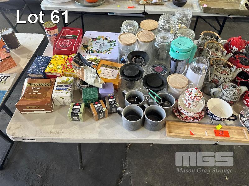 ASSORTED TEA SETS, TEAPOTS & MUGS & ASSORTED TEAS,
