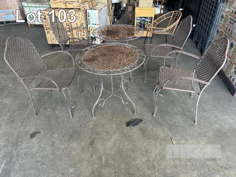 2 x STEEL GARDEN TABLES, 900mm (D) & 4 x STEEL CHAIRS TO MATCH