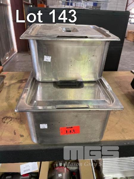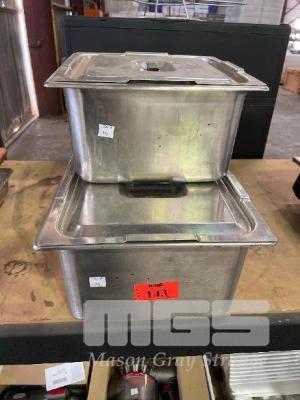 STAINLESS STEEL FOOD CONTAINERS, 1 x DUAL LID, 50 x 25 x 16cm & 1 x SINGLE LID, 25 x 25 x 16cm