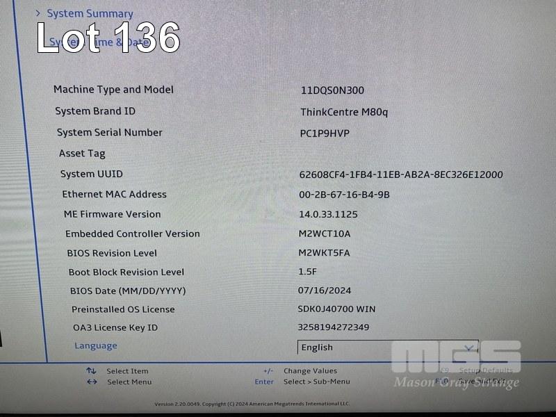 DESKTOP PC, LENOVO THINKCENTRE M80q TINY, TYPE 11DQ, CORE i5 10400T (10TH GEN) @ 2GHz, 8GB DDR4 RAM, 256GB NVMe M.2 SSD, INTEL UHD GRAPHICS 630, WINDOWS 11 HOME INSTALLED & POWER SUPPLY (NO KEYBOARD, NO MOUSE) S/N:PC1P9HVP