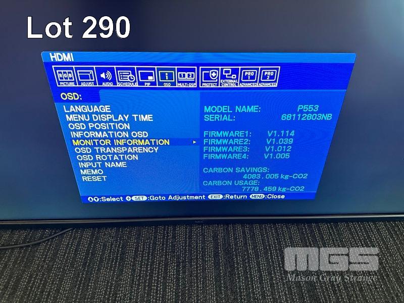 MONITOR, NEC MULTISYNC P553 55" COMMERCIAL LCD DISPLAY (NO REMOTE, NO STAND) (NOTE: SCRATCH ON SCREEN) S/N:68112803NB