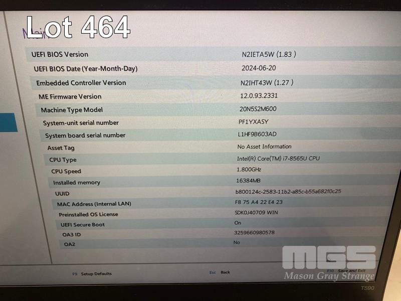 LAPTOP, LENOVO THINKPAD T590, TYPE 20N5, CORE i7 8565U (8TH GEN) @ 1.8GHz, 16GB DDR4 RAM, 256GB NVMe M.2 SSD, 15.6" TOUCHSCREEN (1920x1080), INTEL UHD GRAPHICS, Wi-Fi, BLUETOOTH, WINDOWS 11 HOME INSTALLED (NO USB-C POWER SUPPLY) (NOTE: MARKS ON SCREEN) S/N:PF1YXASY