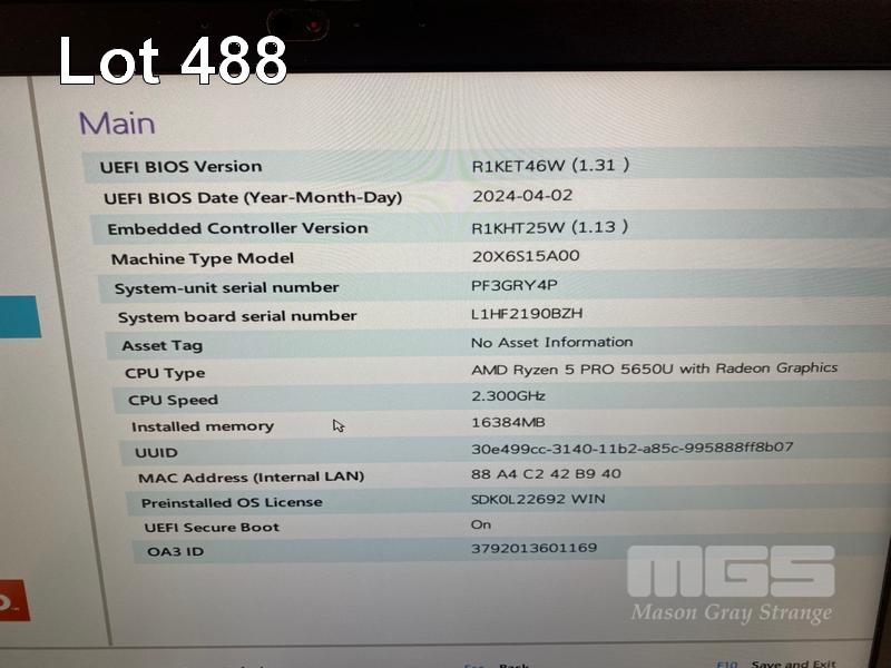 LAPTOP, LENOVO THINKPAD L14 Gen2, TYPE 20X6, AMD RYZEN 5 PRO 5650U @ 2.3GHz, 16GB DDR4 RAM, 256GB NVMe M.2 SSD, 14" TOUCHSCREEN (1920x1080), Wi-Fi, BLUETOOTH, WINDOWS 11 PRO EDUCATION INSTALLED (NO USB-C POWER SUPPLY) (NOTE: TOUCHSCREEN FAULT, MINOR MARKS ON SCREEN) S/N:PF3GRY4P
