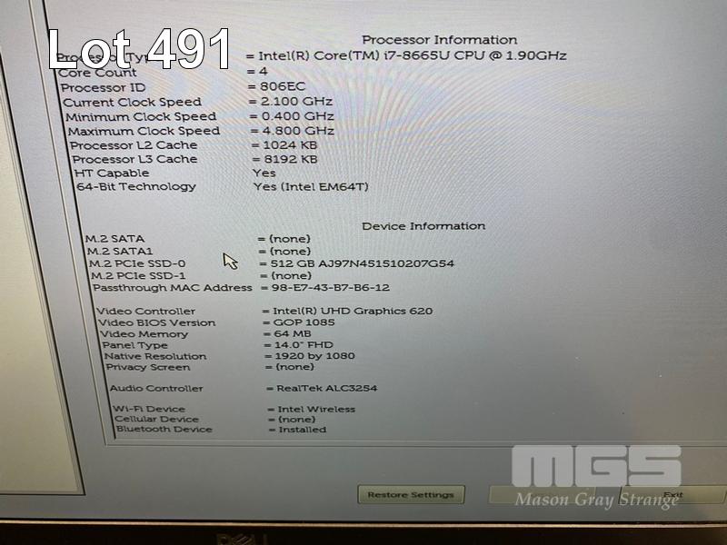 LAPTOP, DELL LATITUDE 7400, CORE i7 8665U (8TH GEN) @ 1.9GHz, 16GB DDR4 RAM, 512GB NVMe M.2 SSD, 14" WIDESCREEN (1920x1080), INTEL UHD GRAPHICS 620, Wi-Fi, BLUETOOTH, WINDOWS 11 HOME INSTALLED & POWER SUPPLY S/N:599K0Z2