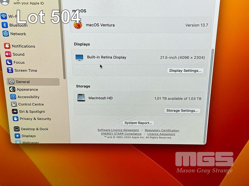 APPLE iMAC (A1418), CORE i5 7400 (7TH GEN) @ 3GHz, 16GB DDR4 RAM, 1TB FUSION DRIVE, BUILT-IN 21.5" RETINA DISPLAY (4096x2304), 2GB RADEON PRO 555 VIDEO, Wi-Fi, BLUETOOTH, MAC OS 13 INSTALLED, MACALLY KEYBOARD & MOUSE S/N:C02XJ070J1G9