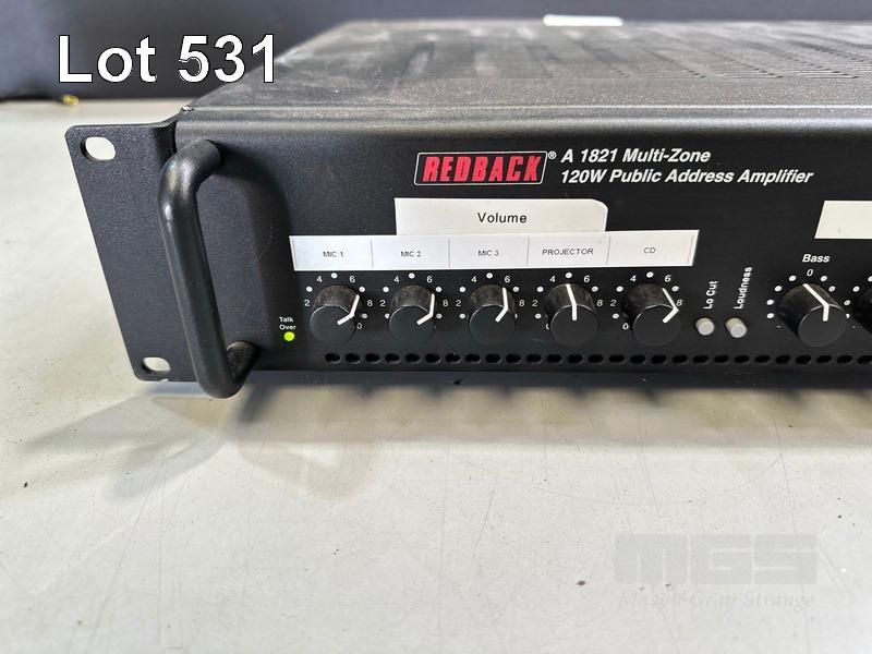 REDBACK A1821 MULTI-ZONE 120W PA AMPLIFIER WITH 2 x REDBACK MICROPHONES (NO CABLES)