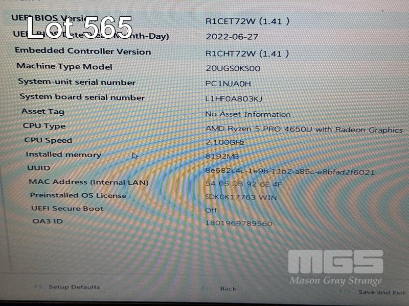 LAPTOP, LENOVO THINKPAD X13, TYPE 20UG, AMD RYZEN 5 PRO 4650U @ 2.1GHz, 8GB DDR4 RAM, 256GB NVMe M.2 SSD, 13.3" WIDESCREEN (1366x768), Wi-Fi, BLUETOOTH, WINDOWS 10 PRO INSTALLED & USB-C POWER SUPPLY (NOTE: MISSING "ESC" KEY, MARKS ON SCREEN) S/N:PC1NJA0H