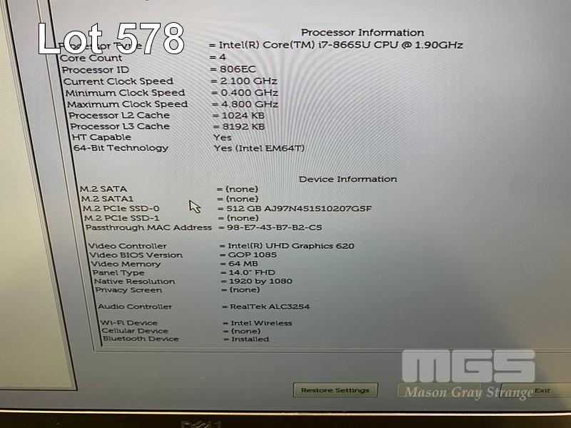 LAPTOP, DELL LATITUDE 7400, CORE i7 8665U (8TH GEN) @ 1.9GHz, 16GB DDR4 RAM, 512GB NVMe M.2 SSD, 14" WIDESCREEN (1920x1080), INTEL UHD GRAPHICS 620, Wi-Fi, BLUETOOTH, WINDOWS 11 HOME INSTALLED & POWER SUPPLY (NOTE: MISSING RUBBER STRIP UNDERNEATH) S/N:66YJ0Z2