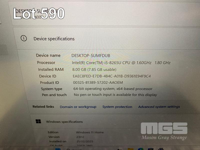 LAPTOP, DELL LATITUDE 5400, CORE i5 8265U (8TH GEN) @ 1.6GHz, 8GB DDR4 RAM, 512GB NVMe M.2 SSD, 14" WIDESCREEN (1920x1080), INTEL UHD GRAPHICS 620, Wi-Fi, BLUETOOTH, WINDOWS 11 HOME INSTALLED (NO POWER SUPPLY) (NOTE: SWOLLEN BATTERY, MARKS ON SCREEN) S/N:3CB51X2