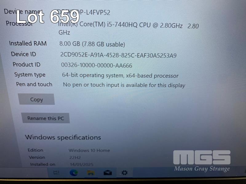 LAPTOP, DELL LATITUDE 5480, CORE i5 7440HQ (7TH GEN) @ 2.8GHz, 8GB DDR4 RAM, 512GB M.2 SSD, 14" WIDESCREEN (1920x1080), INTEL HD GRAPHICS 630, Wi-Fi, BLUETOOTH, WINDOWS 10 HOME INSTALLED & POWER SUPPLY (NOTE: MESSAGE "REPLACE BATTERY") S/N:462YNH2