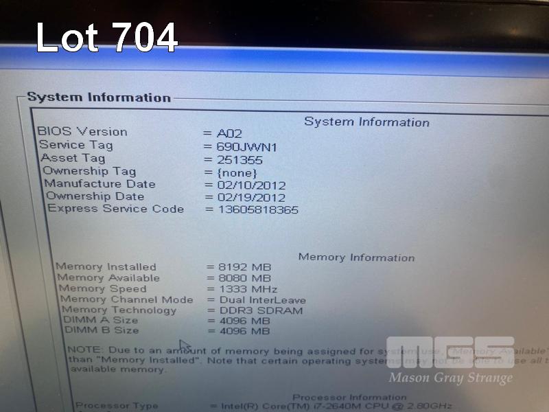 10 x LAPTOPS INC. - DELL LATITUDE 7480, CORE i7 6600U @ 2.6GHz, 16GB RAM, NO HDD (NO BATTERY) - DELL LATITUDE E7470, CORE i7 6600U @ 2.6GHz, 16GB RAM, NO HDD (BATTERY NOT HOLDING CHARGE) - DELL LATITUDE E7440, CORE i5 4310U @ 2GHz, 8GB RAM, NO HDD (KEYBOARD FAULT) - DELL LATITUDE 5491, NO RAM, NO HDD (NO BATTERY, FAULTY) - DELL LATITUDE E5570, 8GB RAM, NO HDD (BATTERY FAULT, KEYBOARD DAMAGE, FAULTY) - DELL LATITUDE E5570, 8GB RAM, NO HDD (FAULTY) - DELL LATITUDE E5470, 16GB RAM, NO HDD (FAULTY) - DELL LATITUDE E7440, 16GB RAM, NO HDD (NO BATTERY, POOR CONDITION, FAULTY) - TOSHIBA TECRA R840, CORE i5 2520M @ 2.5GHz, 4GB RAM, 250GB HDD - DELL LATITUDE XT3, CORE i7 2640M @ 2.8GHz, 8GB RAM, 320GB HDD (NO POWER SUPPLIES) S/N:69LCPH2, JHRSLC2, 2J97P12, 2YBFRV2, JH2RGC2, HG7RGC2, 61J3BG2, 9YDPP12, 6C056696H, 690JWN1
