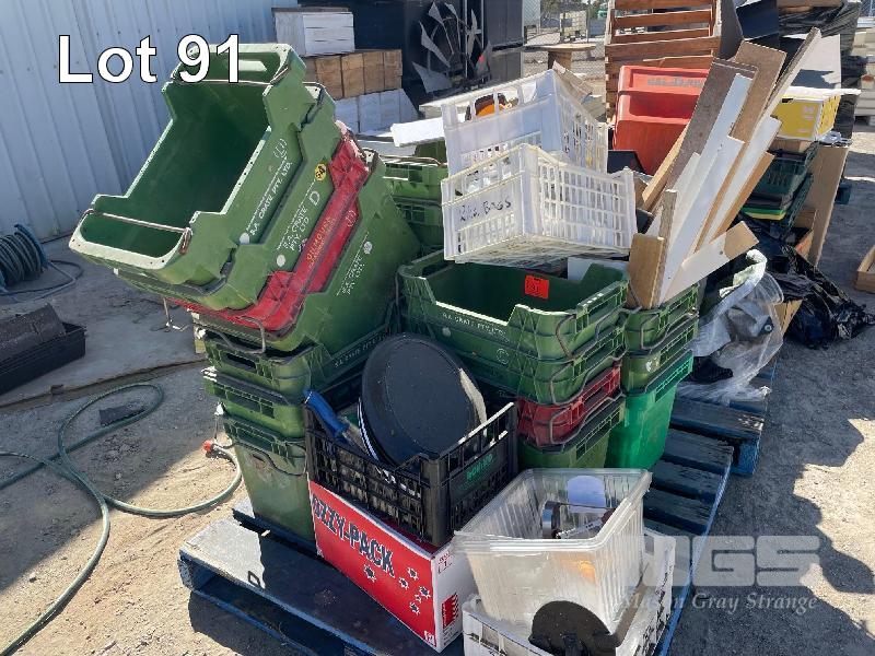 ASSORTED PLASTIC TRAYS, HOSES, & PRODUCT TRAYS, 5 x PALLETS