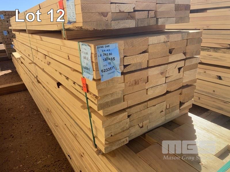 6233511 PACK OF UNTREATED PINE DAR TIMBER MERCH GRADE 140X35 70 LENGTHS, 3/2.4,17/3.0,24/3.6,26/4.2 = 254 L/M