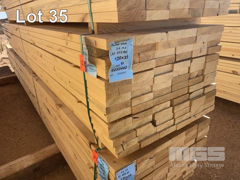 6233462 PACK OF UNTREATED PINE DAR TIMBER MERCH GRADE 120X35 84 LENGTHS, 3/2.4,14/3.0,26/3.6,41/4.2 = 315 L/M