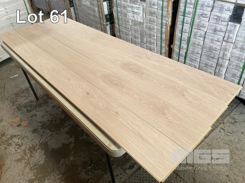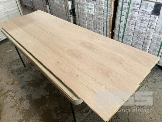 31.59m2 TIMBER LAMINATE FLOORING PLANK SIZE: 2250 x 195 x 12mm COLOUR: VINTAGE WASH AC4 HIGH QUALITY RATING (TOTAL 12 CARTONS)