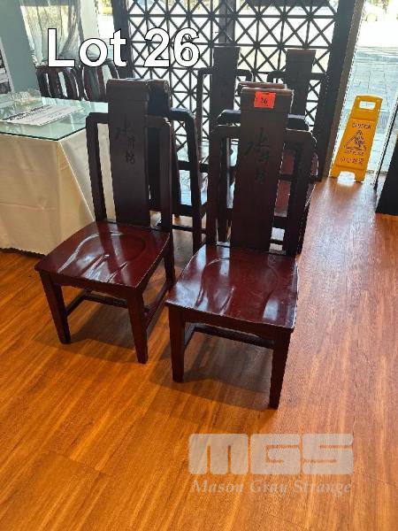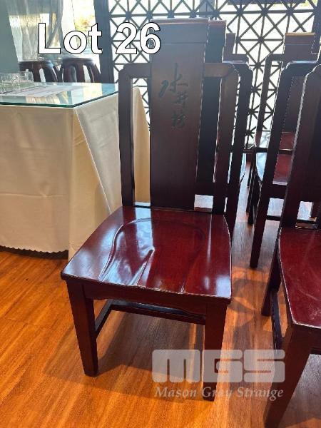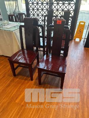 6 x RED SOLID TIMBER DINING CHAIRS, HIGH BACK