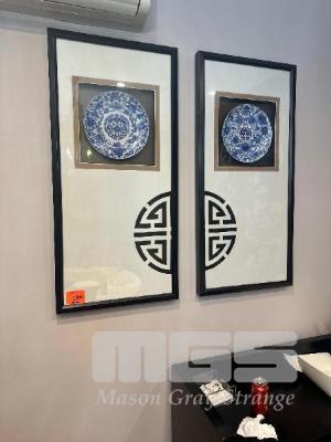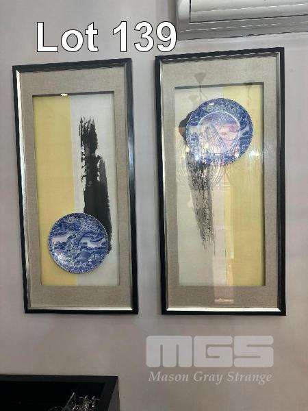 4 x FRAMED & GLAZED DECORATIVE PLATES, 1050 x 500ml