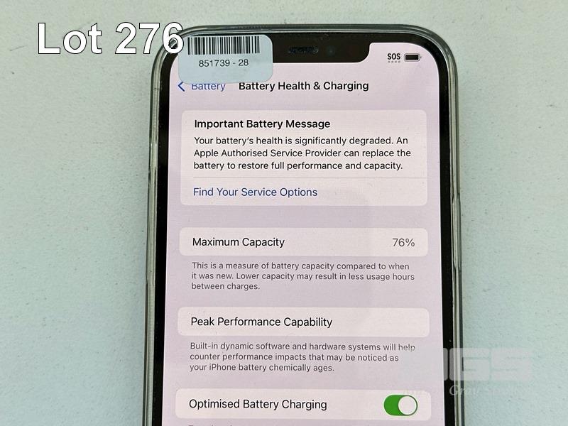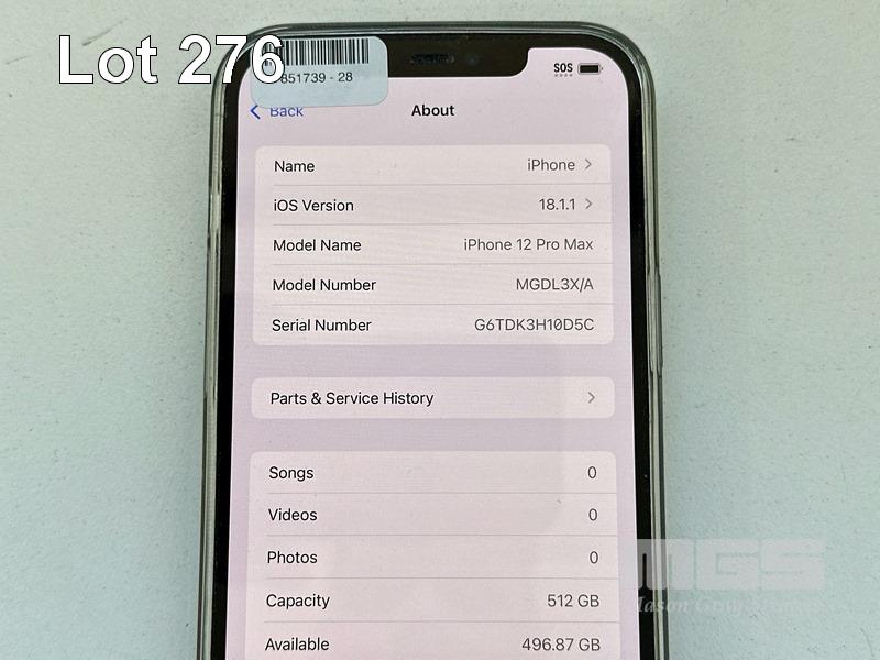 APPLE iPHONE 12 PRO MAX, 512GB, BLUE, MODEL MGDL3X/A, A2411, BATTERY HEALTH 76% (NO CABLE, NO CHARGER) (NOTE: DAMAGED BACK, BATTERY SERVICE MESSAGE) S/N:G6TDK3H10D5C