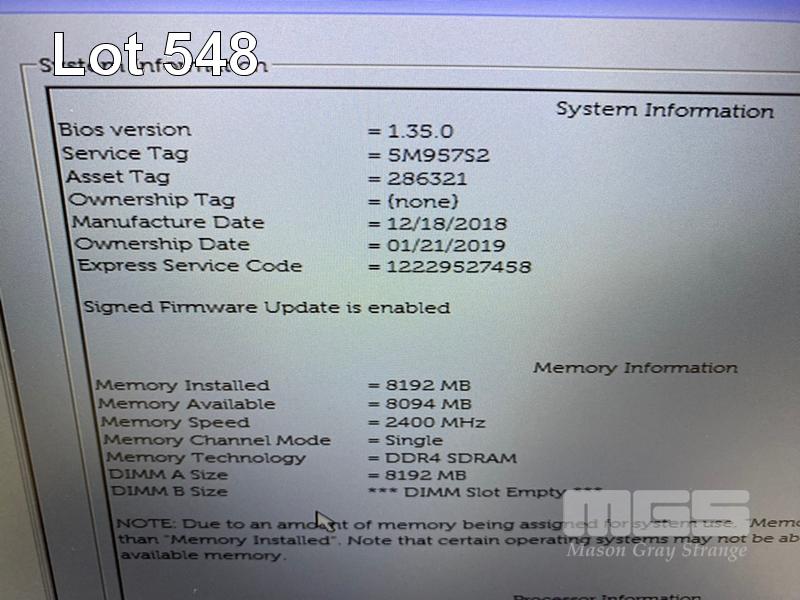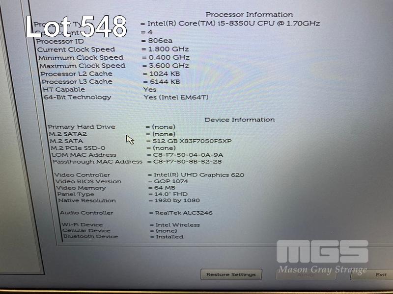 LAPTOP, DELL LATITUDE 5490, CORE i5 8350U (8TH GEN) @ 1.7GHz, 8GB DDR4 RAM, 512GB M.2 SSD, 14" WIDESCREEN (1920x1080), INTEL UHD GRAPHICS 620, Wi-Fi, BLUETOOTH, WINDOWS 11 HOME INSTALLED (NO POWER SUPPLY) (NOTE: SWOLLEN BATTERY, MINOR MARKS ON SCREEN) S/N:5M957S2